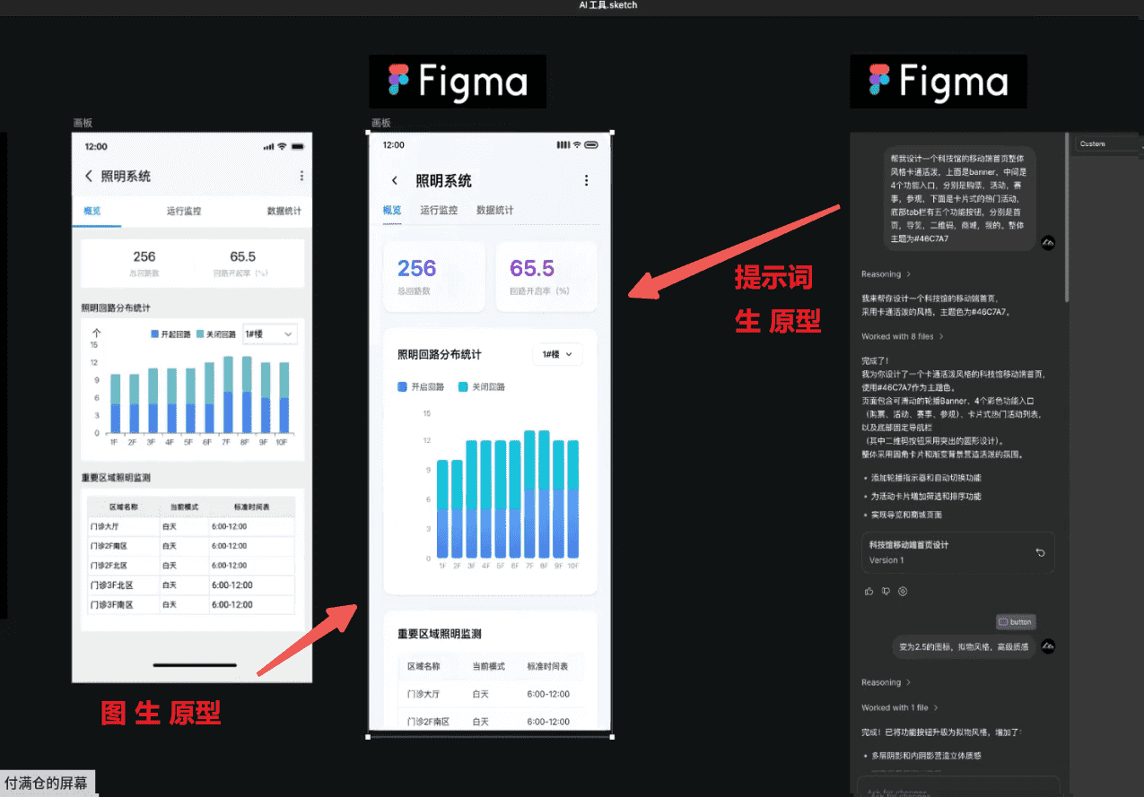 结合 AI 以后,我们可以直接让 AI 通过文本指令替代我们“执笔”输出带有手绘草图风格的画版,而不需要再从零拉框手绘画图。